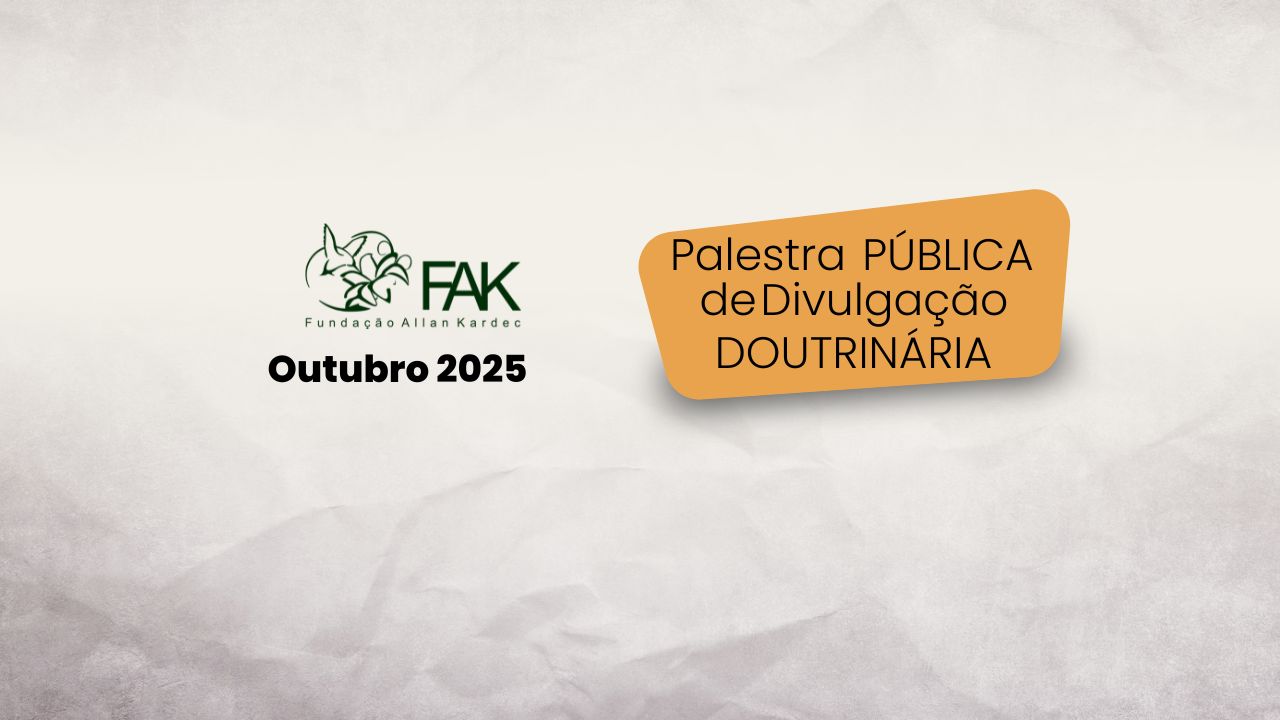 Palestras Públicas de Divulgação Doutrinária – Outubro – 2025 O mês de Outubro chega trazendo uma oportunidade para todos aqueles que desejam aprofundar seus conhecimentos na Doutrina Espírita e vivenciar reflexões capazes de transformar o cotidiano. A Fundação Allan Kardec (FAK) preparou uma programação especial de palestras públicas, gratuitas e...